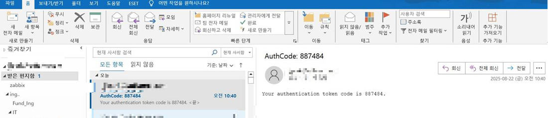 1차 LDAP인증 패스워드를 입력하면 아래와 같이 해당 메일 계정으로 메일을 발송했다며, 토큰을 입력하면 접속이 완료된다.
